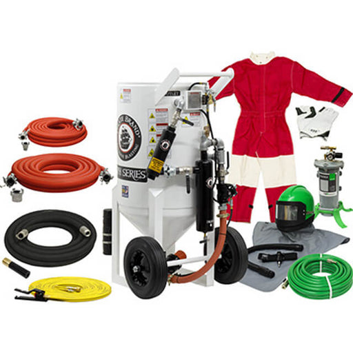 6.5 cu ft Portable Pneumatic Sandblast Pot – Gold Sandblasting Package, Pressure Hold System with APV Valve & 1-1/4″ Piping with Moisture Separator